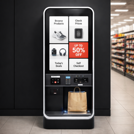 این کیوسک به مشتریان اجازه می دهد محصولات مختلف را مشاهده ، اطلاعات مربوط به تخفیف ها را دریافت و به صورت خودکار خرید خود را تکمیل کنند